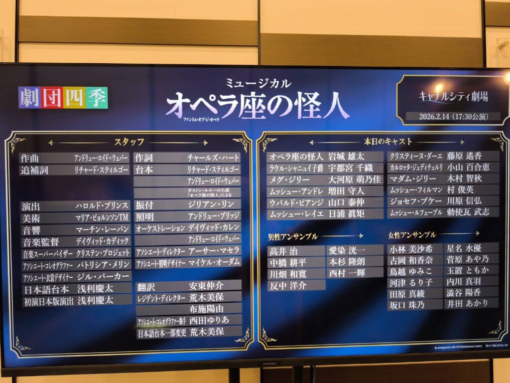 福岡キャナルシティに再び劇団四季「オペラ座の怪人」の公演があると知ってから、ワクワクとドキドキ。この日のために毎日頑張ってこれたといっても過言ではない。昨年11月は次女と一緒に。今日は息子と一緒に。う~~~もう一回観にいきたいのでスケジュールとにらめっこの私。