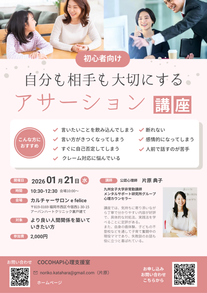 オンラインのかたは、お申込み後お支払い先をご案内いたします
