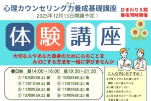 この講座では、心のしくみをやさしく学びながら、自分をラクにするヒントを見つけていきますので、心理学が初めての方も大歓迎です♪
