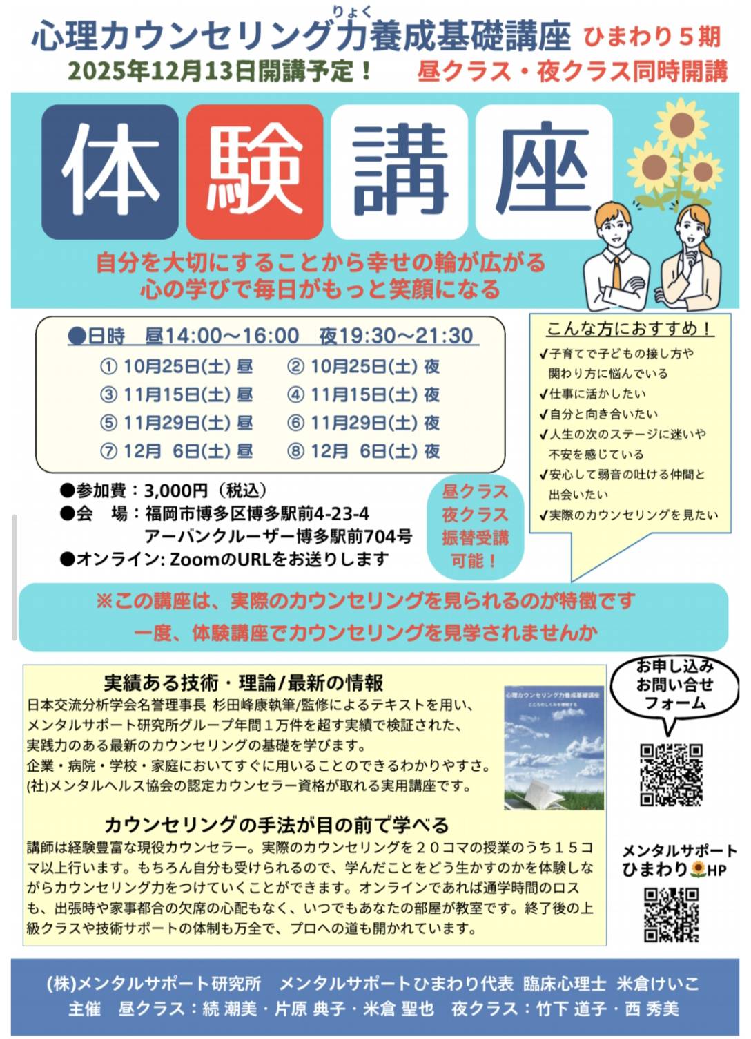 2025/09/17~ こころが軽くなる心理学講座(全4回)